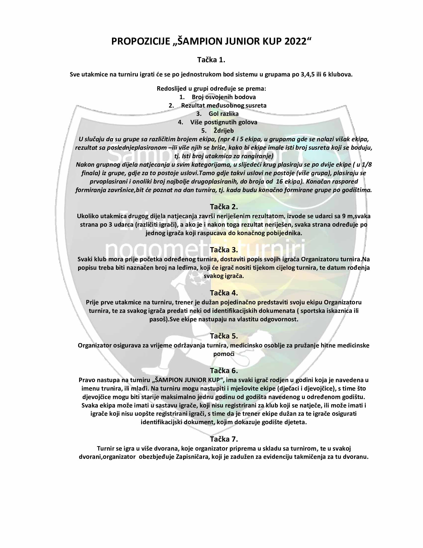 Šampion Junior Kup 13.-16.01.2022 - Propozicije